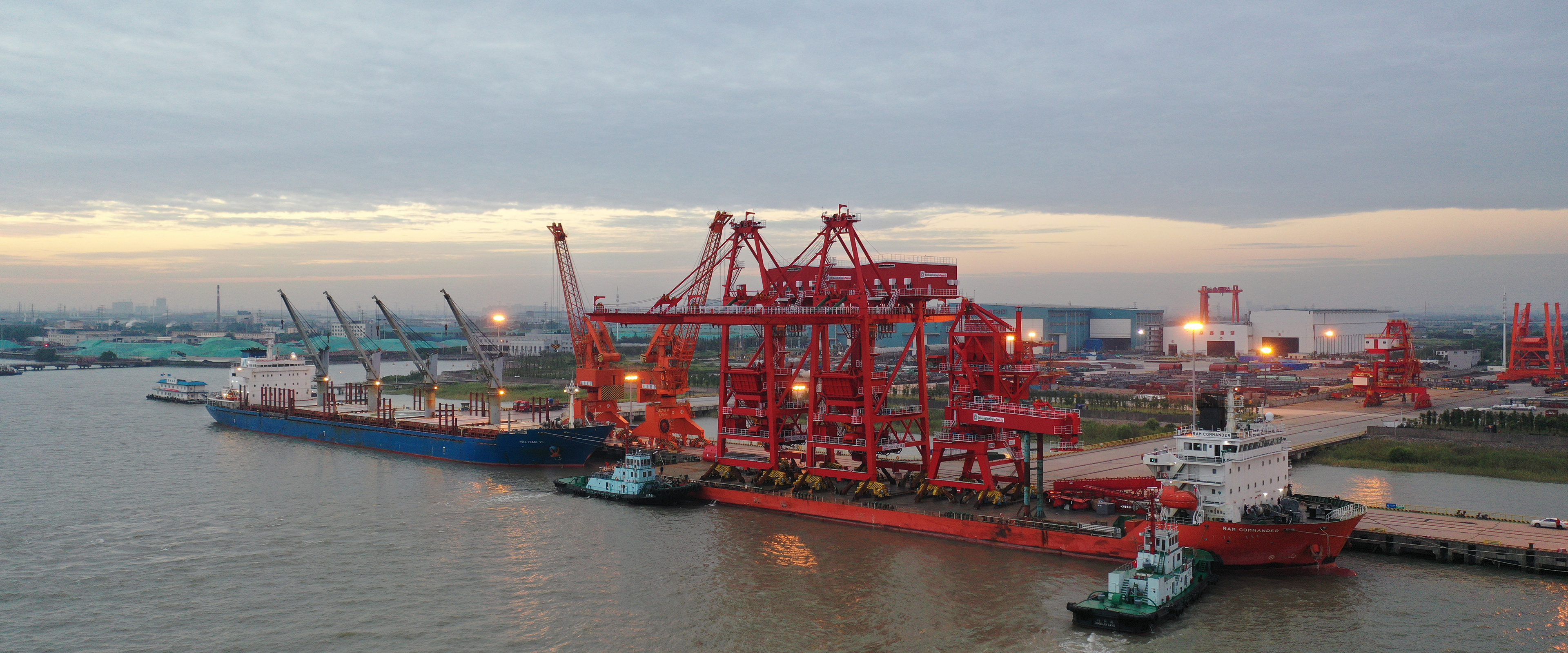 中鐵建港航局泰興港務(wù)2臺1500tph卸船機完成大件吊裝